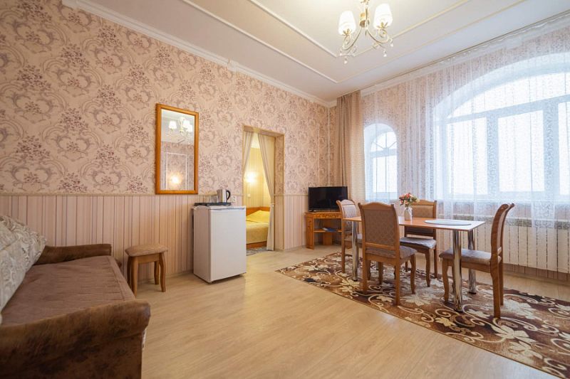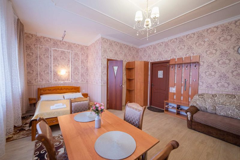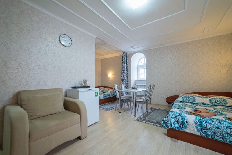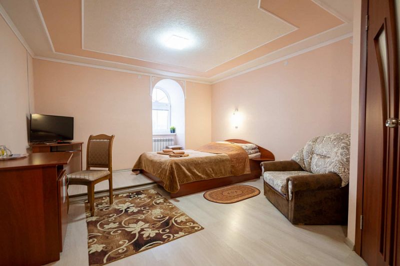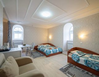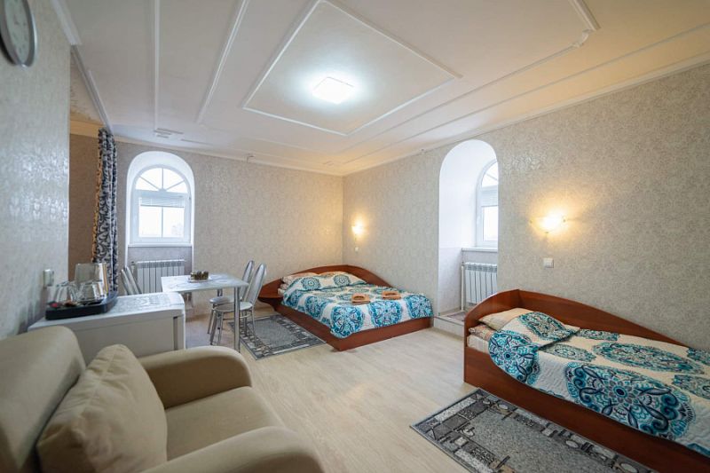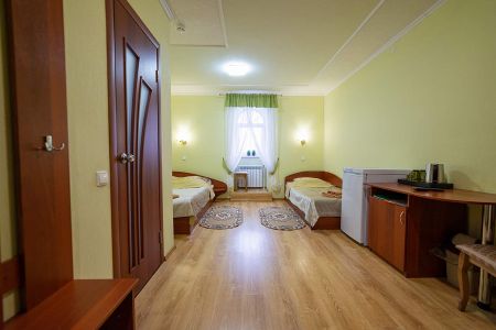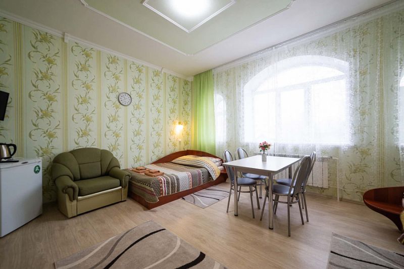 Двухэтажный корпус с фигурным аттиком разместился на улице Площадь Коммуны. Небольшой жилой фонд предлагает для размещения 16 современных уютных номеров. Все номера оснащены персональным санузлом с душем, кондиционером и телевизором, электрочайником.